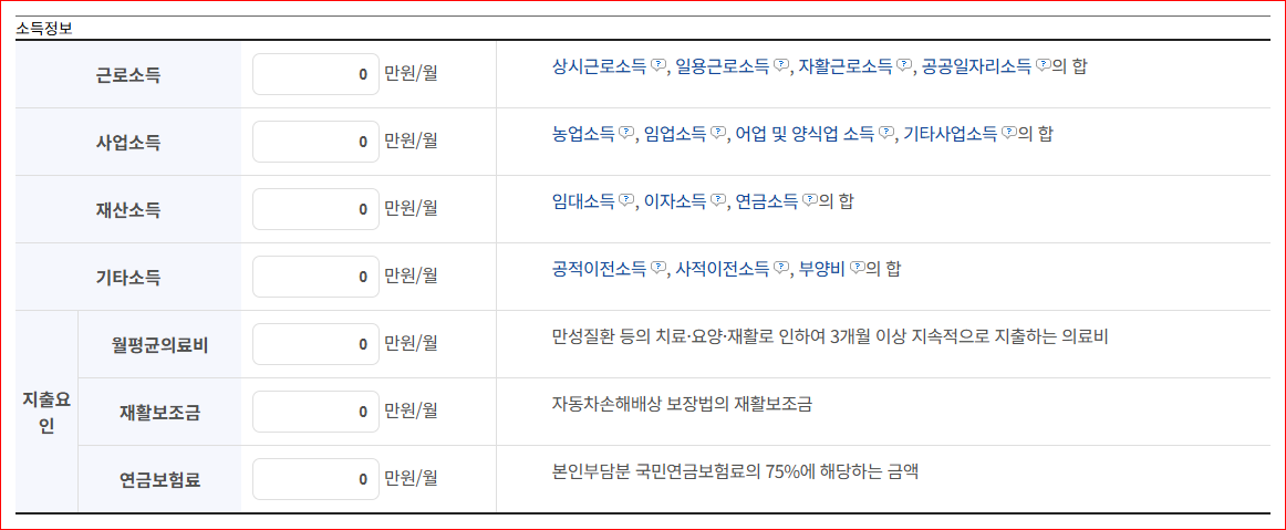예를 들어, 월급 300만 원에 전세보증금 1억 원이 있다면, 1억 원 × 소득환산율(4%) ÷ 12개월 = 약 33만 원이 추가되어 총 소득인정액은 약 333만 원으로 계산됩니다.