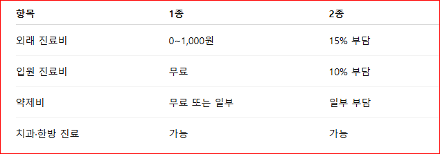 의료급여는 1종과 2종으로 구분됩니다. 두 유형은 지원 범위와 본인부담금 비율에서 큰 차이가 있습니다.